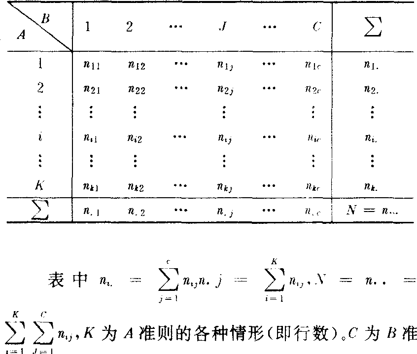 | 释义 | 独立性检验dulixing jianyan指以列联表形式出现的两种分类准则是否独立的假设检验。若否定假设,就认为两种分类准则之间存在关联性或相依性。列联表的记数形式见表1。 表1 K×C的列联表