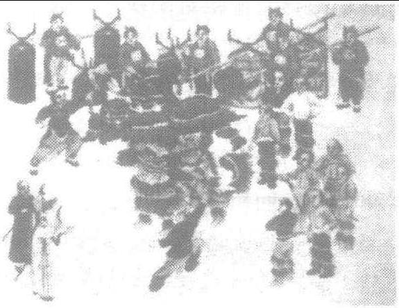 | 释义 | 狮子舞徽州狮子舞历史悠久,盛行城乡。主要用竹、木、膏、泥、铜片特制狮头,绸缎、苎麻染织狮衣,由二人穿戴装扮表演。表演时有狮童或魁星以彩球诱狮。有狮童的母狮要生小狮。表演有“显脸”、“跳四门”、“狮子啸天”、“金扁担挑水”、“登桌高翻”等程式。狮子舞以抑扬顿挫的锣鼓点子为演出指挥。气氛浓烈,戏谑风趣。除了在舞台上演出外,还可在地摊、街头,屋堂、店堂演出,历来为群众喜闻乐见。 狮子舞清道光年间传入新城铺、八方等村,表演时两人合作,一人顶狮头,一人披狮身,一人执绣球引逗,腾上跳下。传统动作有“就地十八滚”、“走方桌腿”等。 167 狮子舞流行于我国各地的传统民间舞蹈形式之一。狮子象征着吉祥、勇敢和力量。早在汉代《汉书·礼乐志》中就有记载。有舞狮以服瘟降魔的传说。狮子舞的狮型一般由两人组成,前者舞狮头,后者舞狮身。这样二人合成一只大狮子称“太狮”。由一人披戴狮型的小狮子称“少狮”。手拿一个能转动的绣球,在前引逗狮子起舞的少年叫“狮子郎”。动作有转球、抛球、抖球等。狮子舞分文、武两类:文舞有搔痒、舐毛、打滚、抖毛等动作。武舞有跳跃、滚翻、高举、腾转等动作。此外,各地有“手狮舞”、“手摇狮”、“火狮子”、“板凳狮”、“线狮”、“醒狮”等多种狮型、样式和舞法。 狮子舞唐代宫廷舞蹈。唐以前狮子舞已在 民 间 流传。狮子本不产于我国,汉时经月氏和安息国 (古 波斯) 使者作为贡品进献给汉王朝。由于狮子的外貌及勇猛被看作威武和祥瑞的象征,人们逐渐在模拟狮子的形象动作中形成了一种独特的舞蹈形式,这种拟兽的表演者并被冠以一个专门名称“象人”。经过三国、魏晋、南北朝,至唐代,狮子舞有了较大的发展与创新,不仅在服饰化妆上形似,而且采用丰富的舞蹈语汇,刻画狮子的各种情态,力图做到神似。宫廷立部伎中的“太平乐” 亦称“五方狮子舞”,表演规模相当大,舞者披着缀毛的假狮皮,装扮成五个颜色不同的狮子,各立一方,表演狮子“俛仰驯狎”的各种情态。另有二人扮成“昆仑象” (即黑人) 牵着绳,拿着拂逗弄狮子,旁边还有由一百四十人组成的大型伴唱队,高唱太平乐歌,场面雄伟壮观。唐末,经过安史之乱后的宫廷乐舞,人员大大缩减,狮子舞的大型伴唱队已不存在,但舞者人数却有所增加,据《乐府杂录》载,每一狮子有十二个“狮子郎”配合舞蹈,他们头戴红巾,身穿彩衣,手拿红拂子,伴奏乐曲仍为 “太平乐”。唐时宫廷狮子舞虽源于民间,但是某种狮子舞不能随便演,也不能随便观赏。诗人及画家王维,曾任太乐丞,只因伶人为他表演了黄狮子,被除官贬了职。黄是皇帝的象征,黄狮子也只能供皇帝消遣,否则就是越礼、犯罪。唐以后,狮子舞一直在民间流传,至今,成为我国历史悠久、流传很广、样式繁多的优秀民间舞蹈。