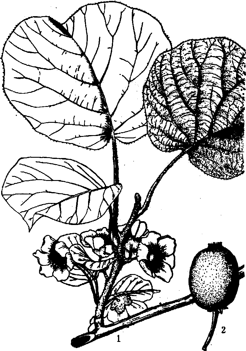 中华猕猴桃(Actinidia chinensis)又称阴桃。原产中国长江中上游沿江森林中,为著名佳果,果实中维生素C含量特别高,一般为1~2mg/g,含糖8~14%。除生食外,亦可加工为果酱、果汁、糖水罐头、果脯、果晶及糖浆等,营养丰富,且对高血压、肝炎等有辅助疗效。20世纪初已被引入欧美各国。1906年新西兰从中国引入栽培,成为新西兰主要出口产品。 猕猴桃科actinidia family;Actinidiaceae双子叶植物,木质藤本。x=8,13。单叶互生,有锯齿,稀全缘,无托叶。花两性、杂性或单性异株,单生或为聚伞花序;萼片5枚,宿存;花瓣5枚,稀少于或多于5枚;雄蕊10或多枚,离生或连合成束,花粉具3孔沟;雌蕊5至多心皮,子房上位,3~5或多室,胚珠每室多数。浆果或蒴果。种子有胚乳。共2属,80余种,分布于东亚。中国2属,79种,分布南北各省,主产秦岭以南、横断山脉以东地区。中华猕猴桃又称阳桃,为著名水果,维生素C含量特别高,可生食,或加工为果酱、果汁、果脯等食品。花可提制香料。嫩枝富含胶汁,可作蜡纸原料。 猕猴桃科双子叶植物。常绿或落叶乔木、灌木或藤本。单叶互生,无托叶。花两性或单性,雌雄异株,聚伞或总状花序或单花腋生。花瓣5或更多,雌蕊3或极多数,子房3至多室,浆果或蒴果。种子极多至5粒,具肉质假种皮。世界4属约280种,多数分布亚洲及美洲热带,少数分布亚洲温带及大洋洲。中国产猕猴桃属、藤山柳属、水东哥属、毒药树属4属,106种。猕猴桃重要果树。许多属种是藤本垂直绿化树种。 |