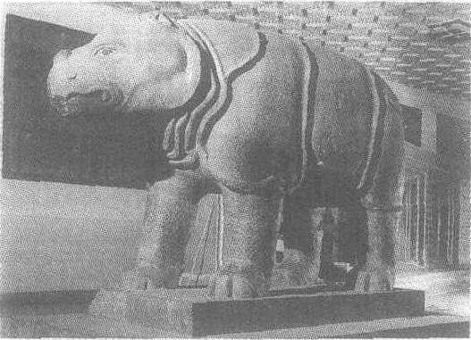 | 释义 | 献陵石犀牛唐贞观九年(公元635年)。高230厘米。陕西省三原县东塬唐高祖李渊献陵前石像生,陕西省博物馆藏。犀牛吻部前突,嘴微启,伸长脖子,叉开四足,稳立于长方形台座上,炯炯有神的双眼盯着前方,细小的鱼鳞纹遍及全身,使其显露出皮毛粗厚的质感。此犀牛继承了汉魏以来敦厚、稳重、朴素的风格传统,造型简洁。在雕刻手法上,运用高度的艺术概括,着力表现出犀牛的特征:如厚重,坚韧的颈部以及对于鼻、嘴、足蹄等既写实又富装饰性的处理,都恰到好处地表现了犀牛迟重而又猛悍的气势,堪称唐初石雕的杰作。犀牛原产于南亚或非洲,文献上曾有过外国进送犀牛的记载。唐代统治者把它雕制在开国皇帝的陵前作仪卫,表明了当时国力强大,中外交流频繁这一史实。