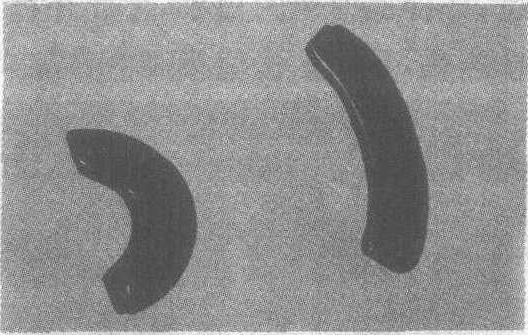 | 释义 | 玉佩新石器时代河姆渡文化。大件长3.5厘米。1973—1974年浙江省余姚县河姆渡第四文化层出土。浙江省博物馆藏。玉质为青绿色,形似环状器折断而成。一件弧度较大,一件弧度较小。通体琢磨光洁。两玉佩的一端均有一穿孔,可穿绳系挂,是我国最早的玉璜形佩。河姆渡文化见“猪纹陶钵”条目。