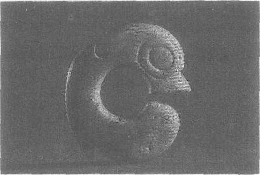 | 释义 | 玉兽玦新石器时代红山文化。高5.5厘米,最厚1厘米。内蒙古自治区巴林右旗出土。内蒙古自治区巴林右旗文物馆藏。玉质为青色岫岩玉,经浸蚀后呈灰白色。中央有一两面穿孔,形如“C”字。首饰一对重环大眼,嘴部尖凸,背上出二齿形脊,颈部有一圆形穿孔,可供穿系之用。除此之外,红山文化中还发现了C形云龙。红山文化见“钩形玉器”条目。