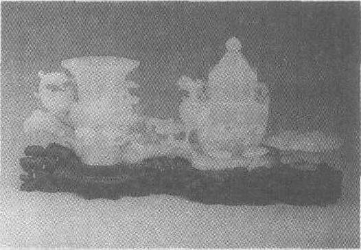 | 释义 | 玉如意双尊清。高13.4厘米,长31.8厘米。台北故宫博物院藏。由一整块青玉琢制而成。下部雕一如意,与如意相依并列地立雕着两个玉尊。一只呈六边形,颈部有一回首站立的玉凤;另一只玉尊呈长方形,有覆斗形盖和花苞钮,肩的一耳边有一引颈的立凤。如意和玉尊上琢出一朵朵灵芝。玉尊仿商周青铜器制作,反映了清朝宫廷艺术的仿古作风。