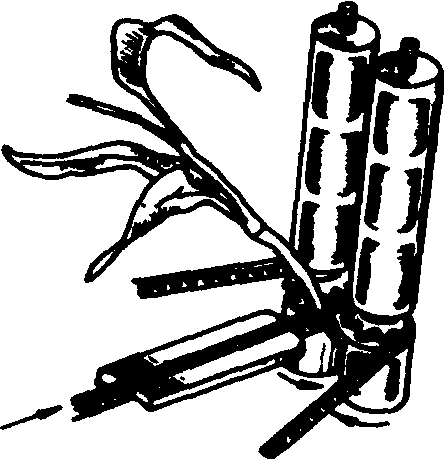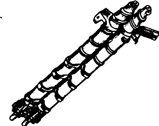 图3 卧辊式摘穗装置 立辊式摘穗装置由与水平面近似垂直配置的摘穗辊和拉茎辊各一对组成(图4)。摘穗辊表面形状有花瓣形、带爪螺旋凸棱形,拉茎辊为六棱形。摘穗辊下端起喂入作用,拉茎辊给玉米植株以拉曳力使之能顺利通过摘穗辊而不堵塞。被割断的植株在挡禾板的辅助作用下,呈40°~50°角由根部朝前喂入摘穗辊和拉茎辊而被摘穗,摘穗辊转速为1000~1200转/分,直径为75~85毫米,长度为300~350毫米。拉茎辊直径为90~135毫米,长度为300~350毫米。