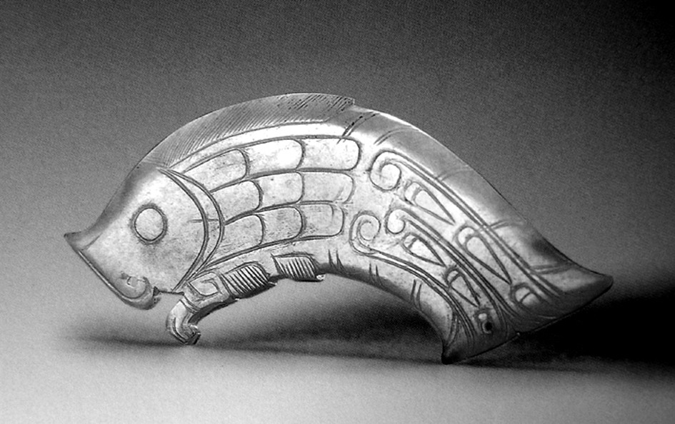 | 释义 | 玉鱼yùyú❶美玉雕成的鱼形珍玩。唐韦述《两京新记》:“长安大明宫宣政殿,每夜见数十骑衣鲜丽,游往其间。高宗使巫祝刘明奴、王湛然问所由。鬼曰:‘我是汉楚王戊太子,死葬于此。’……明奴因宣诏与改葬。鬼喜曰:‘我昔日亦是近属豪贵,今在天子宫内,出入不安,改卜极幸甚。我死时天子敛我玉鱼一双,今犹未朽,必以此相送,勿见夺也。’明奴以事奏闻,及发掘,玉鱼宛然,自是其事遂绝。”杜甫《诸将》:“昨日玉鱼蒙葬地,早时金碗出人间。”五代王仁裕《开元天宝遗事》卷下:“贵妃素有肉体,至夏苦热,常有肺渴。每日含一玉鱼儿于口中,盖藉其凉津沃肺也。” 玉鱼装饰品。1973年6月黑龙江省绥滨县中兴乡金墓出土。墨玉雕刻而成,长2. 5厘米、宽1. 5厘米,两面雕刻,鱼肥大,鳞细密,从莲叶下游出。动态感极强。 玉鱼yuyu西周玉佩饰。1983年淳化县润镇乡西梁家村西周墓出土。立体圆雕。长9.8厘米,中宽3.1厘米,厚0.4厘米。淡青色,半透明,扁平鱼状。表面阴雕鱼嘴、鱼目及鳞、脊、胸、腹、尾、鳍。刻工精细。两面纹饰相同。鱼嘴和尾部各有一小孔。形象逼真,颇为生动。现藏淳化县文化馆。