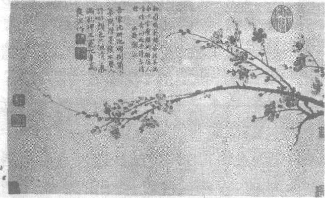 墨梅图 王冕 王冕1300?—1359Wangmian字元章,号煮石山农,浙江诸暨人。出身于农民家庭, 曾为人牧牛,自学成才。后受教于学者韩性,传其学。曾应进士举不中,即焚其文,下东吴,入淮楚,浪迹漂泊。至正七年左右,北游大都(即今北京市),预感天下将乱,遂携妻絜隐于会稽(今浙江省绍兴市)九里山,结庐三间,自题为“梅花书屋”。据《保越录》记载, 他死前曾出为朱元璋咨议参军。有《竹斋集》行世。王冕所处社会地位,使他比较多地接触了人民群众,作品也较多地反映了元末尖锐的阶级矛盾和民族矛盾。他的诗,语言质朴自然,一反元末某些人的诡俊纤仄的习气,但有时模拟李白、杜甫诗过于显露,有些生硬粗糙。王冕工篆刻,善书画,尤以画没骨梅花著称于世,题画的梅花诗抒发了他耿介正直, 淡泊人生的节操和品格。 王冕1287—1359元画家、诗人。其诗多写现实生活,伤时感事,愤激沉痛。表现隐逸生活之作,志趣高洁,语言质朴。诗风以质直豪放为主。参见“艺术”中的“王冕”。 王冕1287—1359元画家、诗人,字元章,号煮石山农等,诸暨(今属浙江)人。出身贫寒,勤于学习。工画墨梅,花密枝繁,生意盎然,劲健有力,或以胭脂作设骨梅,别具风味。相传以花乳石(青旧石一类)作印材始自他。参见“文学”中的“王冕”。 王冕1287~1359元代诗人、画家。字元章,号煮石山农、饭牛翁、会稽外史、梅花屋主等,诸暨(今属浙江)人。出身农家,苦学成名。试进士不第,遂绝意仕途,游历东吴、淮楚,大都等地。晚年隐居浙东九里山,以作画易米为生。有《竹斋集》及续集4卷。善绘画治印,工诗。其诗题材较广,不少诗篇揭示了人民的苦难,抨击了元代统治者的腐败淫逸,如《悲苦行》、《伤亭户》、《盘车图》、《江南民》等。有些吊古伤今之作表达了对宋室的眷念,隐含着民族意识。写隐居生活的诗作则表现了洁身自好的品格。所作语言朴素自然,风格较质直豪健,但某些模仿前人之作,不免露出斧凿之迹。 王冕元代画家。1287年生,1359年去世。诸暨(今浙江省诸暨市)人。工画墨梅,并善画竹。1346年作《墨梅图》卷(30.8cm×92.2cm)。1353年作《南枝春早图》轴(141.3cm×53.9cm)。1355年作《墨梅图》轴(68cm×26cm)。《为良佐写墨梅图》卷(31.9cm×50.9cm)。 |