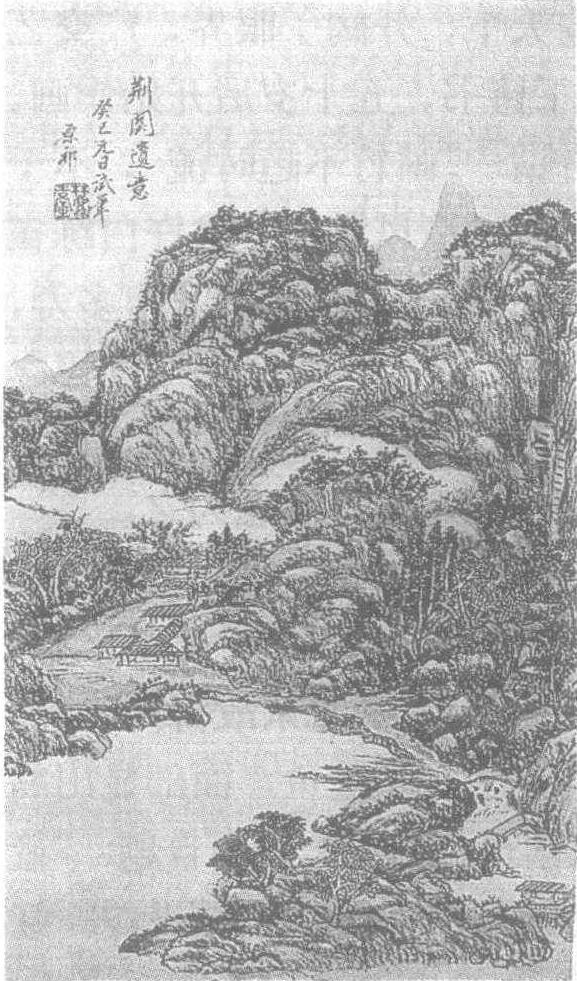 王原祁 《荆关遗意》 王原祁(1642——1715),字茂京,号麓台,别号石师道人。江苏太仓人。王时敏之孙。康熙进士。“由知县擢给谏,改翰林,补春坊。天子嘉其画,供奉内庭,鉴定古今名字画,晋少司农,充书画谱总裁、万寿盛典总裁官”(《国朝画征录》)。善画山水,主要师法黄公望,晚年兼师吴镇。对宋元其他名家,略师大意而已。主编《佩文斋书画谱》,征引浩博,内容丰富,是研究清初以前书画的重要资料。 |