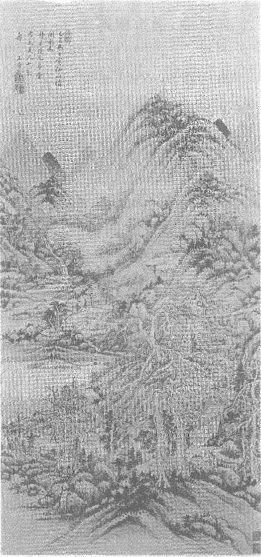 | 释义 | 王时敏仙山楼阁图轴清。王时敏绘。纸本墨笔。纵133.2厘米,横63.3厘米。北京故宫博物院藏。王时敏(公元1592—1680年),字逊之,号烟客,晚号西庐老人、西园主人等。江苏太仓人。以荫官至太常寺少卿,而淡于仕进,优游笔墨,明崇祯十三年(公元1640年)即告归,入清不仕。出身于书香世家,少时性聪颖,而于画有特殊天赋。曾得到董其昌、陈继儒等名家的指点与熏陶,遍访古人名迹,泛学“元四家”,尤得于黄公望,用笔含蓄,格调苍润、松秀。追求笔墨趣味,偏重摹古。与当时的王鉴、王翚、王原祁、吴历、恽寿平并称“清初六大家”,位居“四王”之首。亦工诗文,善书。著有《王烟客集》。此幅构图饱满。远处山势平缓,峰峦层叠,如屏而立,山谷中楼阁掩映在长松白云间。一股流泉自左侧山间急湍而下,于中景平缓处汇为湖水,水边一座庭院,清幽宜人。近景坡地之上草木葱郁,二棵老松盘虬伸展,茅舍翼然其间。山石以淡墨皴擦,重墨点苔,皴法老到厚重。松树用篆隶法写之。笔墨飘逸,于山水繁密中见清疏雅逸之情趣。画法上略近黄公望,而树木繁密交错,又有王蒙笔意,令数家笔墨融于一纸,为我所用。画面天头有吴伟业题识:“此帧苍深高远,尺幅中恍到仙真栖止,出入烟云飘渺间。笔墨之奇,非仅得子久三昧也。”此幅作于乙巳小春,时年王时敏74岁,为其晚年之笔。