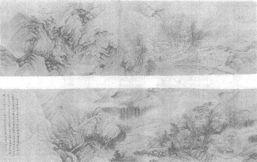 | 释义 | 王概秋帆旷揽图卷清。王概绘。绢本设色。纵29厘米,横918.1厘米。上海博物馆藏。王概(公元1654—约1710年),初名丐,后改今名,字安节,原籍秀水(今浙江嘉兴)人,居金陵(今江苏南京),善画山水、人物和花鸟。山水学龚贤,以苍健、雄快取胜。著有《画学浅说》、《山飞泉立草堂集》。据此作品的跋可知,画卷是作者沿长江北上40余日后,经反复思考,并借宋人诗意绘制而成。图中所绘为南京郊区的乡野景色。在构图上高远、平远二法兼具,使观者立足点高,视野开阔。作者以细致入微的笔触表现了江南明媚灵秀的山峦、跌宕湍急的溪水、悬如白练的飞瀑、浩淼广阔的大江、阡陌交错的田畴、宽敞整洁的院落。在山水之间活动的人物和舟船,为此画增添了生命力。载客的帆船已升帆起航,渔舟泊于渔浦待发,有人站立院中观景,有人对坐于室中叙谈。整个画面具有遥深恬静的气氛,使观者在如诗的景色中眺望远帆而勾起淡淡的哀愁。作者在用笔时以小斧劈皴和麻皴表现山石的浑厚,用细秀柔韧的线条表现垂柳的风姿及被霜染红的杂树,既显示出秋天的特色,又起到点缀画面的作用。作品款署“绣水王概”,钤<王概之印>朱白文印。