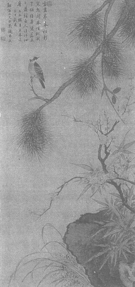 | 释义 | 王武松竹白头图轴清。王武绘。纸本设色。纵102厘米,横49.2厘米。北京故宫博物院藏。王武(公元1632—1690年),字勤中,晚号忘庵,又号雪颠道人,江苏苏州人。明代书家王鏊六世孙,精鉴赏,富收藏,多宋、元、明诸大家名迹,善画花鸟,风格工整秀丽,王时敏称之:“神韵生动,应在妙品中。”他还擅长诗文,是清初院画的名家。此图画岁寒三友松、竹、梅和白头鸟及湖石。图右下方画湖石,淡墨勾勒晕染,湖石旁从右侧向左斜出一竹树和梅枝,竹叶繁茂,梅花绽蕊。松树枝干从右上角斜下伸出,秀劲轻挺,松针细密新嫩,一枯枝上站立一只白头翁鸟,正侧首回望,姿态可爱。湖石左面还点缀着兰花,兰叶姿态婀娜。构图巧妙,设色淡雅,用笔细致,画风清丽秀润。左上自题:“雪尽亭皋松影寒,忽闻春信到栏干,胭脂冻蕊垂垂发,头白人须仔细看。己巳腊月立春前三日,戏为翔翁二兄正吴趋弟武。”钤〈王武私印〉、〈忘庵〉二印。己巳为清康熙二十八年(公元1689年),作者时年58岁。