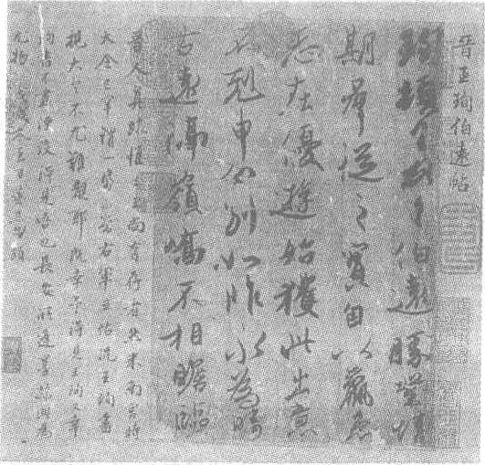 | 释义 | 王珣行书伯远帖东晋。纸本。纵25.1厘米,横17.2厘米。曾经清乾隆、嘉庆内府、清安岐收藏,北京故宫博物院藏。王珣(东晋永和六年一隆安五年,即公元350—401年),字元琳,小名法护,山东琅琊人。曾官尚书令,散骑常侍。工文章。善行草书。董其昌评其书“潇洒古淡”。此件作品行书:“珣顿首,伯远胜业情期,群从之宝,自以羸患,志在优游;始获此出。意不克申,分别如昨,永为畴古。远隔岭峤,不相瞻临。”书法瘦劲古秀,笔法结体与王羲之《姨母》帖极为接近,放笔直书,锋棱转侧之间,笔丝墨迹,真切可见,为晋人墨迹中最可信之真迹,也是最具晋人书风的法书珍品。是著名的“三希”之一。《宣和书谱》、《吴氏书画记》、《平生壮观》、《墨缘汇观》、《石渠宝笈初编》有著录。刻入《三希堂法帖》。