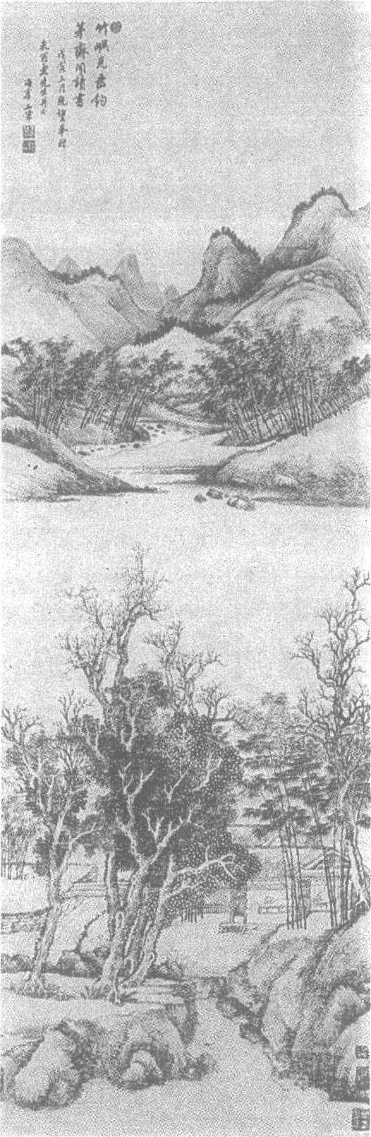 | 释义 | 王翚竹屿垂钓图轴清。王翚绘。纸本设色。纵132.2厘米,横44.6厘米。浙江省博物馆藏。王翚(公元1632年—1717年),字石谷,号耕烟散人、乌目山人、敛门樵客,江苏常熟人。自幼喜爱绘画,王时敏、王鉴弟子。善画山水,在技法上功力精深。曾奉召主绘《南巡图》,受到康熙皇帝的赏识,亲自书写赐予“山水清晖”四字。他绘画功夫娴熟,天资聪颖,随意挥写,运笔自如,得心应手。而且学古不泥古,有自己的特点风格。他自己在《清晖画跋》中说:“以元人笔墨,运宋人丘壑,而泽以唐人气韵,乃为大成”,以此作为自己追求的艺术目标。王翚为清初六大家之一,也是当时“虞山派”的领袖。著有《清晖赠言》、《清晖尺牍》。此图是据唐代诗人孟浩然“竹屿见垂钓,茅斋闻读书”的诗意而作。远景画远山逶迤秀丽,竹林杂树密集,溪水清澈明净,回清倒影,衫托出山野空旷幽静的氛围。近景,修竹高树下掩映茅屋草舍和板桥,屋中设有桌案。房前树下一老者端坐于溪旁,双手持杆,专心垂钓,想必是书读得乏累时,以此来歇息,修身养性。人物神态清闲自在,生动传神,在这位老者之后,还有两童子在一旁侍立。除人物面部略施赭色外,全以水墨写成,构图巧妙,笔法严谨,创作一丝不苟,极见功力。此图是王翚为陈元龙而作,陈元龙字广陵,号乾斋,浙江海宁人,官至文渊阁大学士,公元1704年(康熙43年)告归。王翚作此图是1698年(康熙37年),时年67岁,是他晚年用力之作。