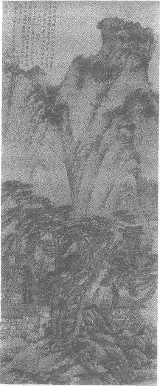 | 释义 | 王蒙春山读书图轴元。王蒙(见《王蒙青卞隐居图轴》条目)绘。纸本淡设色。纵132.4厘米,横55.4厘米。上海博物馆藏。此图是王蒙的一幅佳作。远景绘陡峭高耸的山峦,山巅青草丛生,绿意盎然。近景绘大山脚下,空寂溟溟,数棵枝繁叶茂的苍松挺立于石坡上。山涧溪水潺潺,有一书屋掩映其中,依稀可见,屋内人有的展卷而读,有的对坐而谈。整幅画面洋溢着春日的生机和情趣。此图运笔细劲,设色浓淡相宜,层次分明。画家王蒙以曲折律动的皴法和淡墨的渲染描绘山峦,增强了大山的动势和质感。传统的山水画多表现文人士大夫对大自然的亲近,王蒙在画左上方的自题诗中写道:“白云茅屋人家晓,流水桃华古洞春,数卷南华口忘却,万株松下一闲身。”此图正是画家理想中的乐园。