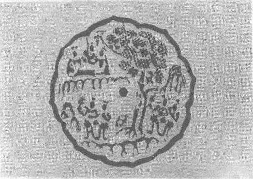 | 释义 | 王质观弈纹铜镜金。直径11.4厘米。1983年吉林省榆树县封堆金代遗址出土。吉林省榆树县博物馆藏。镜为葵花形,背面中央有圆形素钮,钮的右侧有一株大树,树的左右各有仙童二人,均手捧宝什物,左上角有三人,中间一人手持扁担作旁观状。(传为王质观弈)。左右二人盘坐,一人手高举,作置棋状,另一人凝神观奕,似在考虑下一着的对策。这种图文铜镜,据梁任昉《述异志》载:“信安郡宝石山,晋时樵者王质逢二童子弈棋,与质一物如枣核,食之不饥,置斧坐面观。童子曰:‘汝斧柯烂矣’。质归乡间,无复时人。”
