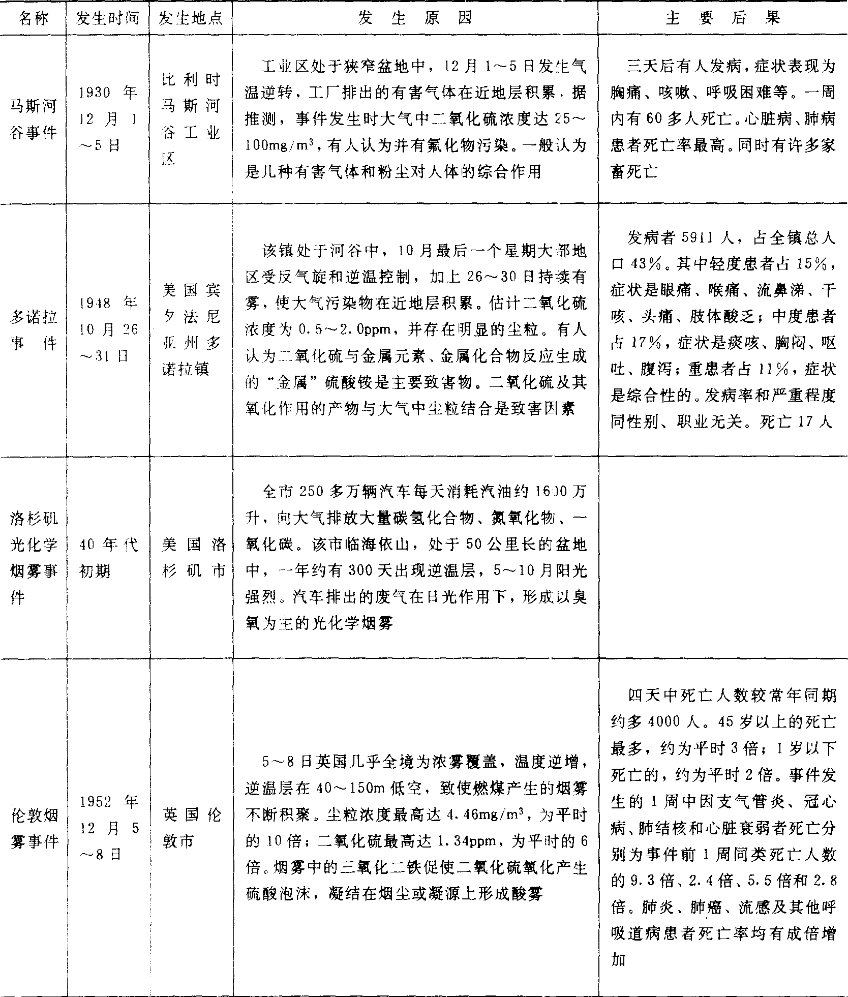| 释义 | 环境污染事件huanjing wuran shijian污染物进入环境在短时期内造成人群大量发病和死亡的事件。环境污染事件按其发生原因分为: ❶大气污染事件: 由于煤和石油燃烧排放的大气污染物造成的。如伦敦的烟雾事件、美国的多诺拉事件、日本四日市事件、美国洛杉矶的光化学烟雾事件。 世界重大公害事件简况