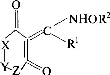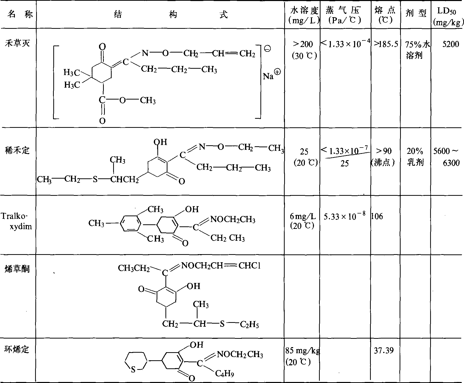 | 释义 | 环己烯酮除草剂cyclohexanedione herbici-des防治阔叶作物田中禾本科杂草的茎叶处理除草剂。化学结构通式: