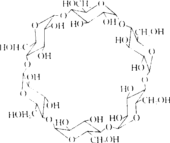 | 释义 | 环状糊精淀粉经环状糊精葡萄糖基转移酶作用后的产物。具有疏水性,是食品工业重要原料。 环状糊精cyclodextrin又称环状麦芽寡糖。6~12个D-吡喃葡萄糖基以α1→4糖苷键头尾连接而成的环状寡糖。研究较多的有3种,含6个、7个和8个D-吡喃葡萄糖基,分别称为环六糊精(α-环状糊精)、环七糊精(β-环状糊精)和环八糊精(γ-环状糊精)。环六糊精的结构式如左。由存在于芽孢杆菌(如软化芽孢杆菌、环状芽孢杆菌和嗜热脂肪芽孢杆菌等)中的环状糊精转糖基酶催化,将直链淀粉或支链淀粉的外围支链转变而成。具有一定程度的阻抗酸、碱和酶的作用,可与某些小分子或离子形成包含络合物,能像酶一样催化酯类水解。作为稳定剂、乳化剂、抗氧化剂、抗光解剂和增溶剂,已大量地应用于食品、医药、化工和轻工业等方面。