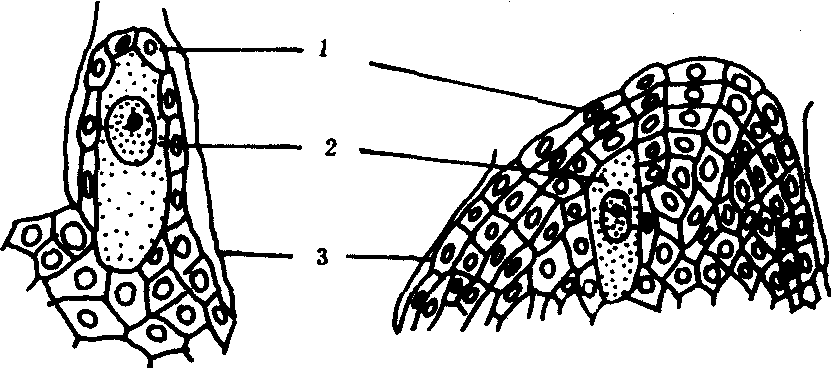 珠心见“胚珠”。 珠心nucellus胚珠中,外为珠被包围,内部形成胚囊的薄壁组织团。胚珠的重要组成部分,起着蕴育胚囊的营养作用。根据珠心发育程度的不同,分为薄珠心和厚珠心两种类型。薄珠心的胚囊母细胞直接位于珠心表皮细胞之下,如向日葵、百合等;厚珠心的胚囊母细胞与珠心表皮之间为数层细胞所隔开,如棉花、玉米等。珠心细胞一般在胚囊发育过程中逐渐解体,但有些植物的珠心组织可保留较长时间,在成熟种子中仍保留一部分珠心组织,如苋科、藜科、蓼科的一些植物。 |