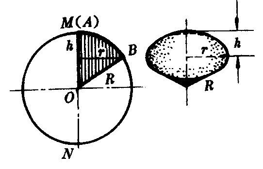 图2 若半圆的直径(MN)和扇形的一条半径重合,则所得到的球扇形是简单球扇形(图1),若半圆的直径不和球扇形的半径重合,则所得的球扇形是中空球扇形(图2). |