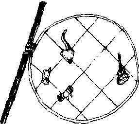 幌子 用细玻璃棒在圈内组成十字,在十字处系上玻璃瓶等玻璃制品,表示铺内生产销售各种玻璃制品,属实物幌。