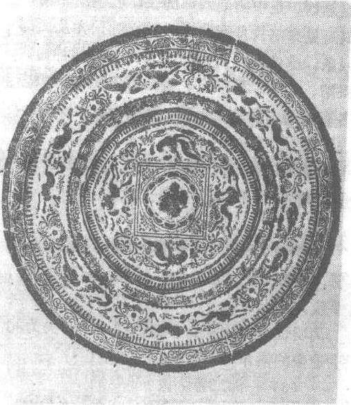 | 释义 | 瑞兽鸾鸟铜镜唐。直径24.5厘米,厚0.16厘米。重410克。1972年陕西省乾县唐乾陵陪葬墓章怀太子李贤墓出土。铜镜圆形,背面中央有圆形素钮,钮外有用双线围成方钮座,钮座内饰有莲瓣纹,方框外四边分别饰飞翔的鸾鸟、舞动的凤凰、腾云的巨龙、跳跃的麒麟、等组成的鸟兽纹。外饰有一周楷书铭文:“鉴若止水,光如电耀,仙客来磨,灵妃往照,鸾翔凤舞,龙腾麟跳,鸟态征神,凝兹巧笑。”铭文带外饰浮雕花草、鸟兽纹,边饰以缠枝花草纹。