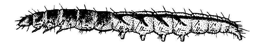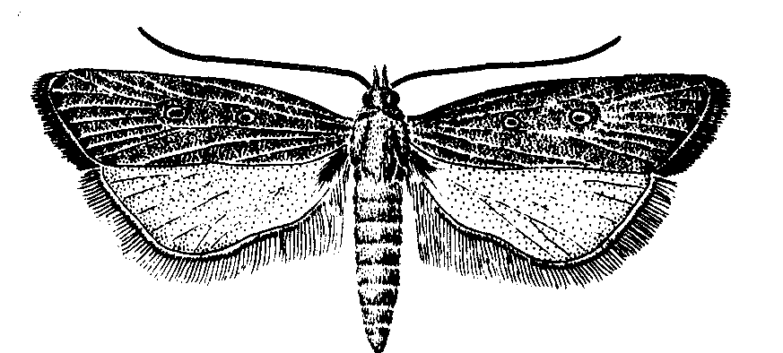 | 释义 | 甘薯麦蛾sweetpotato leaf folder旋花科作物卷叶取食的害虫。又名甘薯小蛾、甘薯卷叶虫。鳞翅目,麦蛾科。学名Brachmia macroscopaMeyrick。分布于日本、朝鲜、印度; 中国的东北、华北、华中、华东、华南和西南,南方各省区发生较重。为害甘薯、蕹菜及其他旋花科植物。成虫体长5~7毫米,翅展15~16毫米,体黑褐色。前翅狭长,近中央处有两个黄褐色小圆斑,周缘有灰白边,外缘有5个横列小黑点; 后翅宽短,暗灰白色。卵椭圆形,黄褐色,表面有脊纹。末龄幼虫体长18~20毫米,头黑褐色杂有灰白色条纹,前胸淡黄绿,前胸盾褐色,两侧有暗褐色纹伸展成倒“八”字形。从中胸至第二腹节为黑色,以后各节乳白色; 第三至六腹节每节两侧各有一黑色斜纹,与亚背线相连(见图)。蛹长7~8毫米,黄褐色,臀棘末端有钩刺8根,呈圆形排列。中国从北到南年生3~9代,北方以蛹在残株、落叶中越冬,湖南、江西、福建等省多以成虫在田间杂草丛中或屋舍内的阴暗处越冬,少数以蛹在残株上越冬。