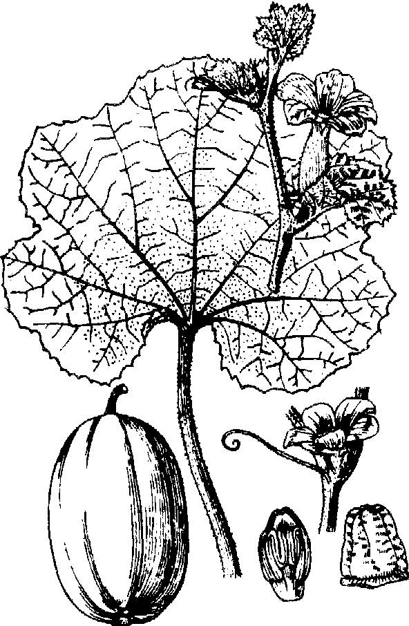 | 释义 | 甜瓜tianguaCucumis melo又称香瓜。双子叶植物,葫芦科。一年生草本,茎蔓生,有短刚毛。卷须不分叉,叶柄有短刚毛,叶片近圆形,3~7浅裂,两面有柔毛,边缘有锯齿。雌雄同株。雄花常数朵簇生,雌花单生。花萼裂片钻形,花冠黄色,裂片卵状矩圆形,雄蕊3枚,子房长椭圆形,花柱极短,柱头3,靠合。果实的形状、颜色,因品种而异,有香味。性喜高温、干燥和充足阳光。原产执带。我国各地均有栽培。华北、西北产的香甜味浓,潮湿地区产的水分多、味较淡。为夏季优良果品,著名的新疆哈蜜瓜、甘肃的白兰瓜,就是甜瓜的不同品系。 甜瓜melon葫芦科(Cucurbitaceae) 甜瓜属中幼果无刺的栽培种,一年生蔓性草本植物。学名Cucumis melo L.,别名香瓜、果瓜、哈密瓜。染色体数2n=2x=24。果实香甜或甘甜,每100克果肉含水分90~93克、碳水化合物9.8克、维生素C29~39毫克,还含有少量蛋白质、脂肪、矿物质及其他维生素等。鲜果食用为主,也可制作瓜干、瓜脯、瓜汁、瓜酱及腌渍品等。中国、苏联、西班牙、美国、伊朗、意大利、日本等国家普遍栽培,以中国产量最高。