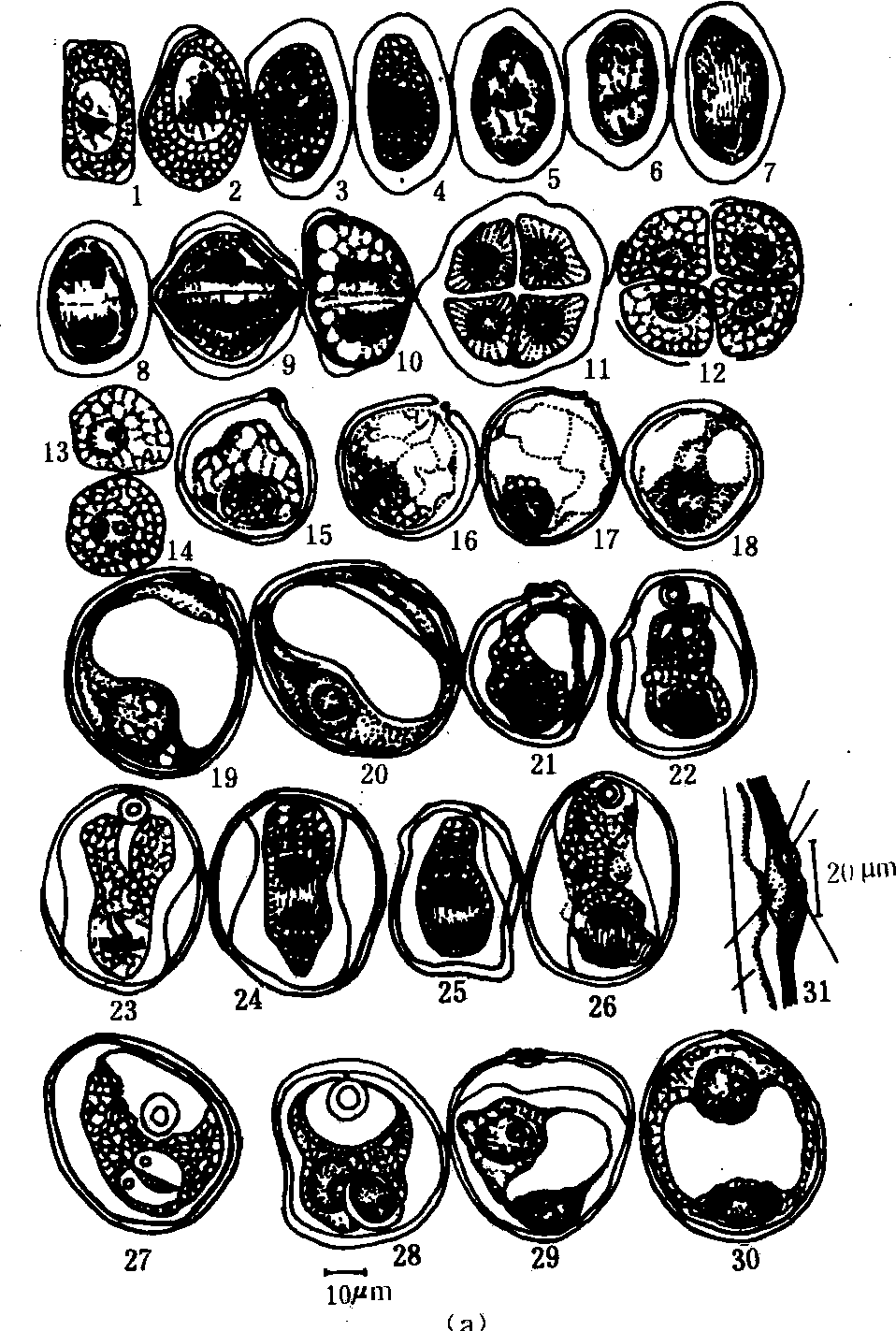 雌配子的形成 被子植物的雌配子是在胚珠的胚囊内形成。胚珠由珠心和珠被组成,珠被并不将珠心顶部封闭,而是留下一个孔称珠孔,胚珠基部与珠孔相对的一方称合点,珠大孢子囊。珠心表皮下的一个细胞体积增大,细胞质变浓,孢原细胞。孢原细胞可以直接转变成大孢子母细胞(胚囊母细胞),也可以分裂形成囊壁细胞和造孢细胞,造孢细胞一般不分裂,而转变成大孢子母细胞。大孢子母细胞经过减数分裂后,产生4个单倍体的大孢子,一般是直线排列。4个大孢子的发展是不同的,一般是珠孔端的3个大孢子退化,合点端的一个转变成单核胚囊、核进行一次分裂,形成的两个子核各走向胚囊一端,以后又进行两次核分裂,形成8个核,每端有4个核。胚囊接近成熟时,每端各有1个核向胚囊中央,互相靠近,称为极核,以后在核间产生细胞壁形成7个细胞、2个极核,形成的细胞称为中央细胞。合点端的3个细胞,称反足细胞。珠孔端的3个细胞分别为一个卵细胞(雌配子)和2个助细胞,合起来称为卵器。因此,典型成熟胚囊中具有7个细胞、8个核。卵细胞受精后形成的二倍体的合子,以后发育成胚,极核在受精后发育成三倍体的胚乳,其他细胞就退化了。裸子植物的大孢子母细胞减数分裂后形成4个大孢子,其中一个发育成多细胞的雌配子体,里面形成2~3个颈卵器,每个颈卵器中有1个卵细胞,卵受精后发育成二倍体的合子,但胚乳是雌配子体的一部分,是单倍体的。 授粉与受精 授粉的方式有自花授粉和异花授粉两种,也存在着中间类型。异花授粉中按花粉的传播方式可分为: 凤媒花、虫媒花、水媒花等。花粉落到柱头上后,花粉柱由周围吸收水分,开始膨大,内壁由萌发孔伸出,伸长为花粉管。花粉与雌蕊的相互作用首先表现在互相选择上,又称之为互相识别。授粉时就可防止遗传差异过小或过大的个体交配,选择生物学上最适合的配偶,保持种的稳定和繁荣。远缘杂交和自交不亲和就是这种识别的具体表现。识别的物质是花粉的壁蛋白,为一种糖蛋白,在柱头的表面也有一层蛋白膜覆盖着,它是识别感受器。花粉落到柱头上后,如果是亲和的,花粉管便释放水解酶,溶解细胞间隙物质,进入柱头,如果是不亲和的,柱头的乳头便产生胼胝质,阻挡花粉管长入。至于花粉管定向地向胚囊生长的机制问题,过去认为是向化性决定的,曾在金鱼草上看到钙离子在花柱中浓度梯度分布决定了花粉管定向生长,但不能证明是植物的普遍现象。现在还认为助细胞的分泌物质起了引诱花粉管定向生长的作用。当花粉管长入胚囊时,一个精子与卵结合产生合子,称为配子融合,另一个精子与两个极核结合形成胚乳初生核,称三核融合,这是被子植物上特有的双受精现象。近来在白花丹上发现两个精子的大小和所含各种细胞器的数量不同,似乎不同的精子分别与卵和极核融合; 而且白花丹上还看到精子的细胞质也参与卵细胞的融合。根据是精子与卵的细胞质中线粒体的大小和形状不同,而在受精卵中发现了精子的线粒体。至于卵与精子的融合过程,正如两个去了壁的植物细胞原生质体融合一样,先是膜的融合,形成桥,然后核进入卵细胞内; 核的融合也是核膜先融合形成桥,精子的核质通过桥进入核内。当卵核内形成了一大一小的核仁时,认为已受精,最后两个核仁融合在一起。受精后二倍体的合子发展成胚,而胚乳初生核形成乳细胞在分裂一段时间后,或被发育的胚吸收(如豆科),或转变成贮藏营养的器官 (如禾本科)。在自然界或人工控制下,被子植物精卵细胞不经受精各自独立发育成胚的单性生殖也是存在的,称孤雄生殖或孤雌生殖,统称无融合生殖。 高等动物的有性生殖 常称脊椎动物为高等动物,它是进化最高的亚门,在自然状态下营有性生殖,雌雄异体,体外或体内受精,卵生、卵胎生或胎生。 鱼类和两栖类雌性排出的卵子是未受精的,雄性同时向产卵水区排精,精子和卵子在水中完成受精过程。爬行类、鸟类和哺乳类通过两性交配行为,在雌性体内完成受精过程。爬行类和鸟类交配后产的“卵”实际上是已受精并初步发育的早期胚胎,是卵胎生。无论是卵生或卵胎生,卵的体积都比较大,含有大量卵黄颗粒,积蓄了丰富的养分,足以支持胚胎在体外的发育直至破壳出世。哺乳类除单孔目外都是胎生,其卵很小,积蓄的养分只够短期发育的需要。卵自卵巢排出的过程称为排卵,排出的卵在输卵管中受精,在子宫中完成胚胎发育直至分娩。胚胎在母体内发育所以能实现,依靠完善的胎盘,它是由胎膜同子宫内膜共同构成的特种器官,具有内分泌功能,是母体与胚胎间一切生理联系的基础,并有生理屏障作用,乃胚胎在母体内得以健全发育的保证。 动物生殖方式是多种多样的。由于在进化过程中出现了某些过渡类型,局部的特定生态条件使某些种群幸存并延续下来,即使属同一纲的动物,也会出现特殊现象。如某些蛇类似“胎生”,实质上并非真正的胎生。其卵无硬质卵壳,也不排出体外,而是在体内完成孵化过程,产出被卵膜包裹着的幼蛇,幼蛇再破膜而出。又如单孔目的鸭嘴兽,是卵胎生而又哺乳的。有袋目缺乏完善的胎盘,胎儿不得不过早出生,依靠育儿袋和母乳继续发育。受精应是有性生殖的必然过程,但在自然界或在人工控制下,单性生殖可以出现,即由单一的生殖细胞发育成为子代个体。在自然状态下,鸟类的孤雌生殖并不是罕
