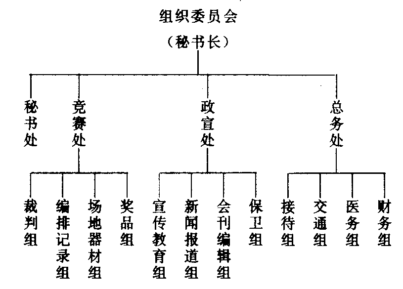 ❷裁判工作。组织裁判员学习田径竞赛规则、竞赛规程及裁判法;结合本次运动会讨论研究裁判方法,制定工作细则;组织裁判实习,做好比赛准备工作。 ❸会场布置及场地器材的准备。 ❹准备大会文件、编印大会秩序册及各种表格。 ❺召开领队、教练员会议,商讨有关比赛的特殊问题。 ❻竞赛的进行,包括开幕式、闭幕式及参观学习等。 ❼组织观众。 ❽组织经验交流会和赛前练习。 ❾制定大会经费预算。 ❿大会总结。 |