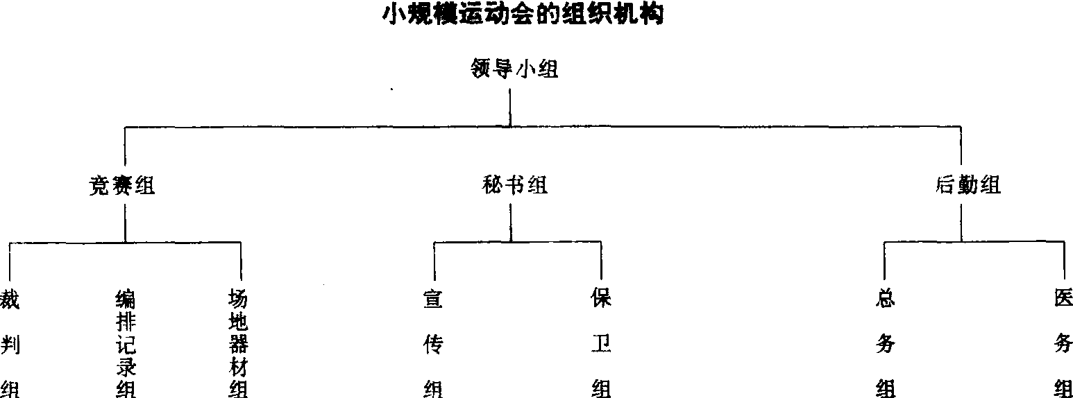 | 释义 | 田径运动竞赛组织Tianjing yundong jingsaizuzhi举办一次小型田径运动会, 主要工作包括成立筹备组织、编排竞赛秩序、准备会场及竞赛场地器材布置等方面。成立筹备组织。田径运动会的主办单位应根据竞赛计划成立领导小组(或筹备小组),规模较大的运动会成立组织委员会或筹备委员会。成员包括学校领导、体育组、后勤和有关方面人员,讨论决定运动会的组织方案、竞赛规程、组织机构及主要工作计划等。组织方案是运动会一切工作的依据, 包括以下内容:❶运动会的名称、目的任务。