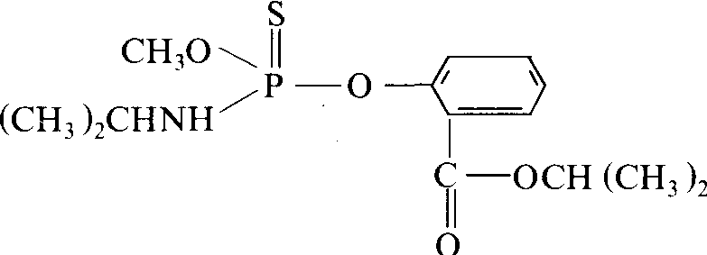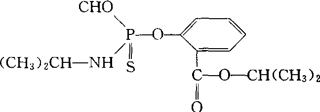 性能 纯品为淡黄色油状液体,强酸或碱性介质中易分解,光和热能加速分解。难溶于水,易溶于一般有机溶剂,不溶于石油醚。对高等动物高毒,大白鼠急性口服LD5029.69毫克/千克(雌),28.4毫克/千克(雄);急性经皮LD50 49.2毫克/千克(雌),60.08毫克/千克(雄)。对蜜蜂毒性高。甲基异柳磷对害虫具有触杀、胃毒作用。 应用 甲基异柳磷适宜用来防治土壤害虫,具有药效好、持效期长的优点。主要以种子处理或撒毒土、撒毒饵、沿播种带浇施药液等方式,用于小麦、玉米、高粱、大豆、花生、廿薯、甜菜等作物,防治蛴螬、蝼蛄、金针虫等土壤害虫,可兼治甘薯茎线虫、花生根结线虫、大豆孢囊线虫。用颗粒剂撒施于蔗苗根际,施药后覆土,可防治甘蔗金龟子。药液土壤处理,可防治甘蔗象甲、桃小食心虫、小麦吸浆虫。还可用乳油对水喷雾,防治小麦、玉米、花生的蚜虫、粘虫。但不能用于蔬菜、茶树,也不能对果树叶面喷雾。 甲基异柳磷isofenphos methyl高毒有机磷杀虫剂。化学名称:O-甲基-O-(2-异丙氧基羰基苯基)N-异丙基硫代磷酰胺。化学结构式如下。纯品淡黄色油状液体,折光率1.5221,不溶于水,易溶于有机溶剂。工业纯品急性口服LD50大鼠(♂)为28.4 mg/kg、(♀)为29.69 mg/kg、小鼠(♂)为24.9 mg/kg、(♀)为33.8 mg/kg,经皮大鼠(♂)LD50为68.08 mg/kg、(♀)为71.13 mg/kg,无作用剂量(NEL)♂大鼠为0.02 mg/(kg·d)、(♀)0.019 mg/(kg·d)。对防治地下害虫有较好的效果。40%乳油500 ml,加水50~60 kg,拌小麦、玉米、高粱种子500~600 kg,播种后可防治蝼蛄、蛴螬、金针虫,保苗期20~40天。亦可用于防治大豆、花生根部线虫。