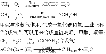 此法正逐步取代碳化钙制乙炔的方法。甲烷在适当的条件下还可直接氧化,得到甲醇、甲醛或甲酸: