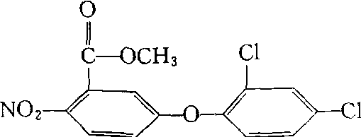 | 释义 | 甲羧除草醚bifenox又称治草醚、茅毒。二苯醚类除草剂。化学名称为:5-(2,4-二氯苯氧基)-2-硝基苯甲酸甲酯。化学结构式如下。纯品为无臭黄色结晶,熔点84~86℃,30℃时蒸气压为320.0×10-6Pa,几乎不溶于水,可溶于丙酮、氯苯,在碱性中易水解,中性、酸性中稳定不易水解,光解,易被土壤吸附。能被杂草幼芽和叶片吸收,不传导。有光活化作用,在光照条件下才发挥药效。杂草接触药剂后,表层组织受到破坏,光合作用受到抑制而使杂草死亡。可防治稗草、千金子、蓼、藜、苋、猪毛菜、鸭舌草、慈姑、泽泻、地肤等杂草。对人、畜低毒,大鼠急性口服LD50>6 400 mg/kg,兔急性经皮LD50>20 000 mg/kg,大鼠急性吸入LC50>200 mg/L。