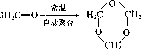 当n>100时为无定形固体,不溶于水,受热至180~200℃时,又可分解为甲醛,是气体甲醛的方便来源。 纯甲醛在三正丁胺催化下,可生成线型高分子化合物: