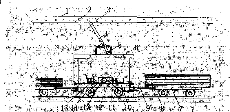| 释义 | 电动平车log tramcar以电动机驱动的有轨平车。用于贮木场选材。电动平车是在人力推平车的基础上发展起来的。中国在20世纪50年代采用交流电机牵引的长大电动选材列车,即在选材台边把原木分装到由10~20个平车组成的列车上,由交流电动机车牵引至楞区进行选材。但这种电动平车耗电量大,操纵性能差,效率低。70年代研制成直流电机驱动的电动平车,在电动机车的前后各挂一辆平车进行选材(见图)。电动机车由直流电动机作动力,通过减速箱和传动链条驱动前后两根轮轴使平车沿轨道行驶,带动前后两台平车沿楞区往返运行卸木选材。电流通过受电器传输给电动机,用凸轮控制器来控制电