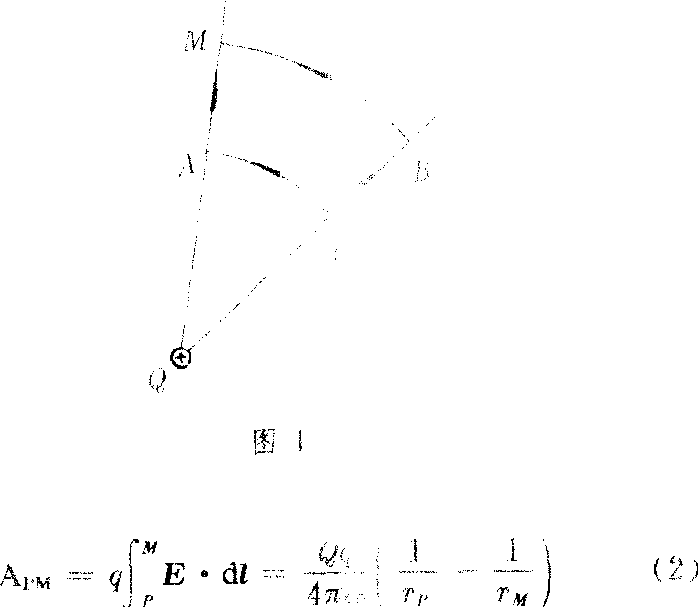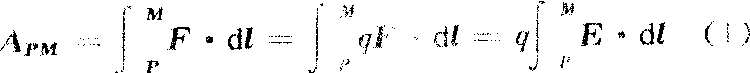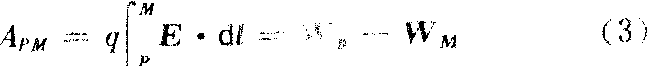 因为电场有按平方反比定律激发的库仑电场(静电场)和由于变化磁场激发的涡旋电场,在这两种电场中电场力的功的性质是不相同。静电场中“静电场力作功与路径无关”是除高斯定理之外静电场的另一基本性质。讨论在点电荷Q产生的静电场中(图1)将另一(试探点电荷q从P点移动到M点,显然沿路径PAM与沿路径PBM电场力的功相同,因为沿弧PA、BM移动时位移方向与电场力方向垂直,电场力不作功,而沿半径方向从A→M与从P→B电场力的功相等。可以证明功式中rP、rM分别为P、M到场源电荷Q的距离。由上述结果和场的迭加原理,可以证明:在任何静电场中,电场力所作的功,只与试探电荷电量q的大小及其在场中的起点和终点的位置有关,与路径无关。因为功是能量转换过程而出现的物理量,功的数值是能量转换的大小的量度。电场力的功量度了某种能量的变化。将q从P移动到M无论沿什么路径,能量的变化总是相同的,因此,这一电场力的功量度了q在位置P和位置M之间的势能的变化。为与重力势能相区别,将其称之为电势能,或电场能。图1中,设q在P点的电势能为Wp,在M点的电势能为WM,则将q从P移到M,电场力的功为