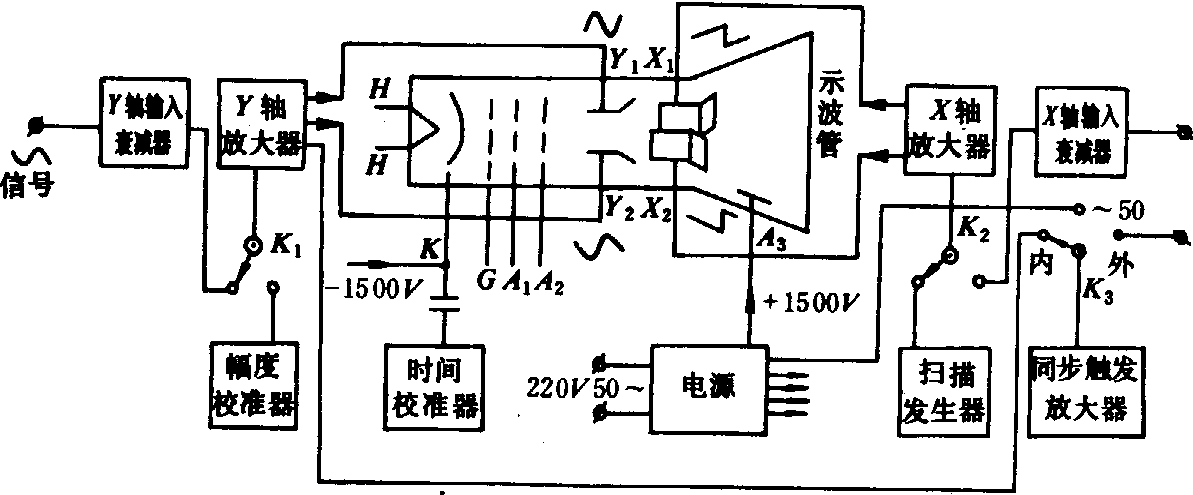 示波管是示波器的核心部件,示波器的电路结构是为了满足示波管的工作需要而设计的。