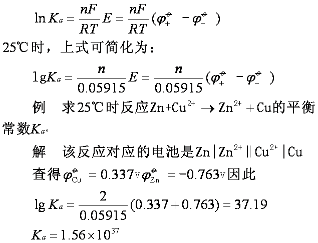 ❷求化学反应的平衡常数已知 =-RTlnKa,又 =-nFE,所以化学反应的平衡常数Ka与该反应对应的电池电动势E的关系式: