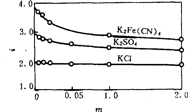 电解质溶液的质量摩尔浓度m与i的关系 |