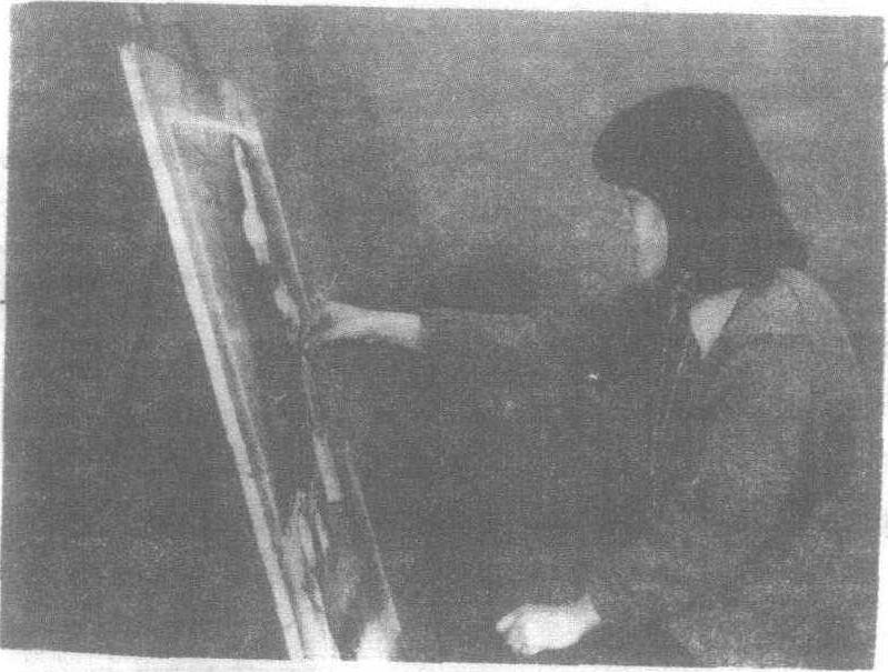 作画注意事项之一。画面的角度应与作画者主视线垂直,如图画姿。作画时不可将画板平放,因为平放,眼睛看画会出现视错,当画面立放时会发现形不准确。