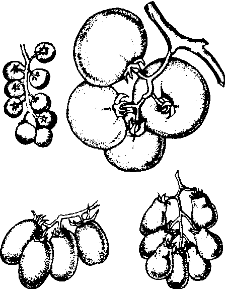 番茄果实类型 类型和品种 目前栽培的番茄,属普通番茄。有5个变种:❶栽培番茄 (var. commune Bailey)。多数栽培品种均属此变种; ❷樱桃番茄var.cerasifor-me Alef.,果实圆球形。果径约2厘米,2室,红、橙或黄色; ❸大叶番茄(var.grandifolium Bailey),叶缘光滑,形似薯叶; ❹梨形番茄(var.pyriformeAlef.),果实梨形,红色或橙黄色; ❺直立番茄(var.validum Bailey),茎直立,果实扁圆球形。 栽培番茄的品种有三大系统:❶意大利系统:果实卵形或椭圆形。适于干燥地区作无支架栽培和加工用。代表品种有罗城一号和罗马; ❷英国系统:果型小,深红色,低温短日照条件下结实性强。代表品种有创财和最佳; ❸美国系统:果实中型至大型,适应性强。中国栽培的番茄品种来自北美或欧洲,经过多年的栽培和选育,已有一批适于中国气候和栽培要求的品种。 生长发育与果实形成 番茄喜温暖,不耐炎热。其生育周期可分为:❶发芽期:从种子萌动到子叶展开,第一片真叶显露。发芽的最低温度11℃,适温20~30℃,最高35℃。 ❷幼苗期:从真叶显露到第一花序现蕾。此期茎叶生长与花序分化同时进行。适宜昼温20~25℃,夜温13~17℃。在光照充足、通风良好、营养完全等条件下,可培育出适龄壮苗。 ❸开花结果期:从第一花序现蕾到果实采收完毕。又可分为:始花结果期——从第一花序现蕾到座果,是由以营养生长为主向生殖生长为主的过渡阶段,须适当控制茎叶生长,促进第一花序座果。开花结果盛期——从第一花序座果到果实采收完毕。茎叶生长与开花座果同时进行,开始转向以开花座果为主,是产量形成的主要时期。光合作用最适温度为22~26℃,30℃时光合强度明显降低,35℃生长停滞,引起落花落果。开花结果期内要通过合理的栽培管理,协调生长和结果的矛盾,以延长结果期。幼苗2~3片真叶时顶芽生长点肥厚隆起,停止分化叶子,随之分化出第一花序的第一花芽,并相继分化其他的花芽。在第一花序原始体基部的新生长点分化1~3片叶子后,进行第二花序的分化。如此循序分化出以后的叶子和花序。若茎端在花芽分化时不再分化叶子,即呈有限生长类型。花芽分化适宜昼温24℃左右,夜温17℃左右。低夜温和强光照,第一花序节位较低,花器官的分化和发育良好。高夜温和弱光照,第一花序节位升高,花器官分化和发育不良,花数减少。8℃以下低温易形成多心皮子房,成为畸形花、果。番茄花芽分化和开花结实除受环境条件影响外,与植株体内营养状况有密切关系。植株光合作用旺盛,碳水化合物积累占优势,C/N比率升高,营养生长适当,则开花结实良好。 开花时花冠转为深黄色,花药内侧纵向开裂。花柱贴着花药壁伸长,花粉粒落到柱头上,完成自花授粉。50多小时完成受精作用。受精后子房内源生长素含量迅速增加,同化产物输入果实,幼果开始生长。花药在低于15℃的条件下不开裂,引起低温落花;花粉粒在高于33℃的条件下失去活力,引起高温落花。开花期间的适温为21~26℃。 开花时子房细胞分裂基本停止,开花后主要是细胞膨大,果实大小与开花时子房大小呈正相关。开花至果实成熟需30~60天。果实生长呈“S”型曲线,即前期慢,中期快,后期又慢。果实发育的适温为昼温25℃,夜温15℃。超过30℃茄红素形成受抑制。绿色果实经8℃以下的低温受寒害,茄红素合成受到干扰和破坏,再给于适宜温度果实也不再转红。果实成熟过程分五个时期:❶青熟期。果实基本停止生长,果顶白,尚未着色; ❷变色期。果顶部由绿白色转为淡黄至粉红色; ❸半熟期。果表面约50%着色; ❹坚熟期。整果着色,肉质较硬; ❺完熟期。肉质变软。番茄属呼吸跃变型果实,呼吸高峰始于转色期,在半熟期达最高值,并具后熟现象,青熟果实能离体成熟。果实成熟期间葡萄糖和果糖增加,淀粉减少,可滴定酸减少,不溶性果胶转变为可溶性果胶和果胶酸,叶绿素降解,胡萝卜素和叶黄素增加,茄红素迅速合成。维生素C含量变化不大。果肉细胞的亚显微结构也发生变化:叶绿素内基粒解体,有色体形成,膜上沉积类胡萝卜素结晶。呼吸跃变后期,线粒体、高尔基体及内质网退化,核糖体消失,胞质囊泡形成。 果实发育期间会出现各种生理障碍:低温下分化的多心皮子房会发育成畸形果和脐裂果,水分供应变化剧烈易引起裂果,受精不良或使用的生长调节剂浓度过高会形成空洞果,高温日晒会发生果实日灼病,干旱缺钙常产生脐腐病等。 栽培技术 中国华北及江、淮地区以春夏栽培为主,如果秋季栽培,后期需保护,如在高山冷凉地区可越夏栽培。东北、西北、内蒙古等地无霜期短,夏季不太炎热,只进行夏季栽培。华南地区夏季炎热,冬季不冷,主要进行秋冬栽培。各地在温室或塑料大棚栽培番茄时,多行冬春和秋冬两茬栽培。忌连作,宜实行3~5年轮作。 育苗移栽,培育适龄壮苗。各地春夏或夏季栽培一般采用温床或冷床育苗;秋季栽培及华南的秋冬栽培采用露地育苗。东北及西北一些地区大面积无支架栽培时,可直播。播种期要根据定植期和苗龄来推算。苗龄长短则因育苗期的温度条件不同而异。北方冷床育苗,苗龄一般掌握在60天左右;夏季高温季节育苗,苗龄约25~30天。苗床培养土要力求营养完全、疏松通气、病原物少。苗床温度: 出苗前昼温25~30℃,夜温15~20℃,出苗后昼温20~25℃,夜温13~15℃。适当降温锻炼幼苗,防止胚轴徒长。2~3片真叶及时分苗(可移入营养钵内或按10