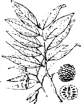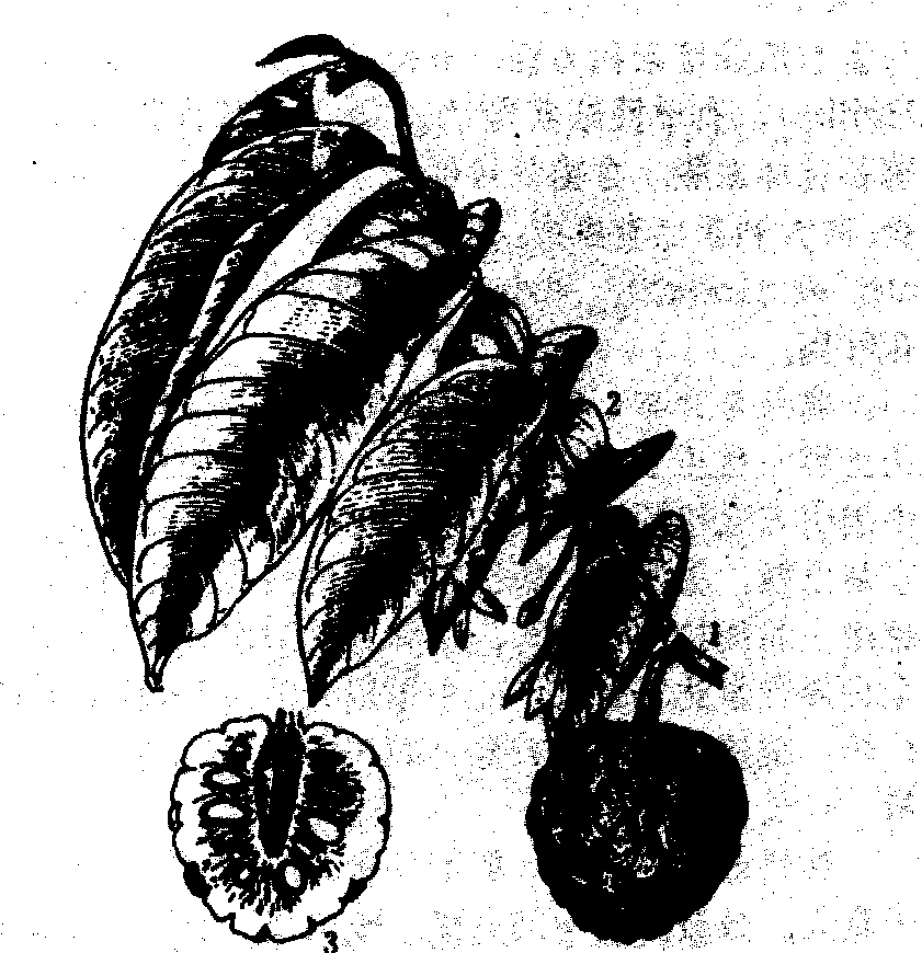 番荔枝sugarapple,sweetsopAnnona squamosaL.,番荔枝科,番茄枝属。半落叶性灌木或小乔木。2n=14,28。原产美洲热带地区,中国台湾、广东、广西、福建、贵州、云南等省区有栽培。树高3~5 m,多分枝,枝条细软下垂。单叶互生,椭圆披针形或长圆形。花单生或2~4朵聚生,5~6月开花。聚合果由多数心皮合生而成,圆球形或心状圆锥形,颇像荔枝。果实直径5~10 cm,黄绿色,外披白粉,有多数瘤状突起,成熟时心皮易分开。种子25~60粒,黑褐色,纺锤形或长卵形,光滑。假种皮,乳白色,浆质、味极甜、具特有芳香,最宜鲜食,也供酿酒和制清凉饮料的原料。适宜热带平原低地、温暖潮湿环境种植。用实生、嫁接、扦插繁殖。