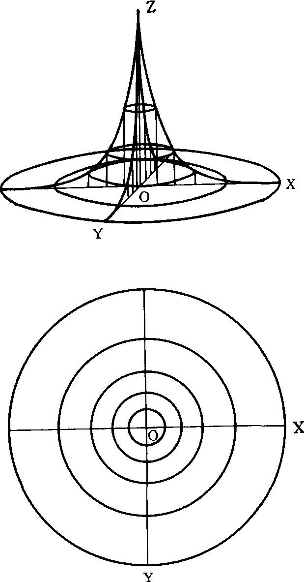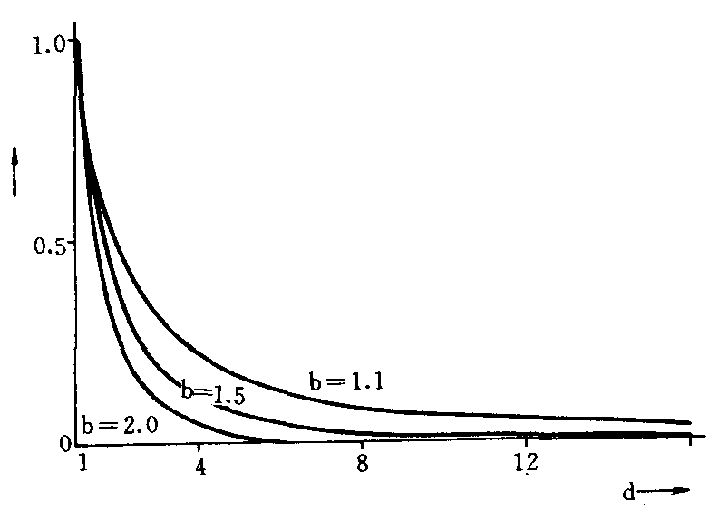 图3 不等半径传播病害密度分布示意图 寄主个体感病性和生态环境比较均一时,田间出现病害梯度,说明附近存在着菌源中心。由本地菌源引起的病害流行,愈是早期,尤以一代传播后的梯度最明显。当病害传播受到大风、旋风或湍流影响时,梯度不十分规律;菌源量大,病害比较严重时(如病情大于20%),梯度会变小。推算梯降系数时需将病情数据进行重叠侵染转换。 病害梯度disease gradient自菌源中心在一定方向、一定范围内,寄主植物发病数量逐渐降低而形成的梯级分布。菌源中心附近寄主植物发病数量最高,离中心愈远,发病数量愈低,形成梯级分布。病害梯度可用多种数学模型表示。梯度较陡的病害传播距离较近,梯度较缓的病害传播距离较远。 |