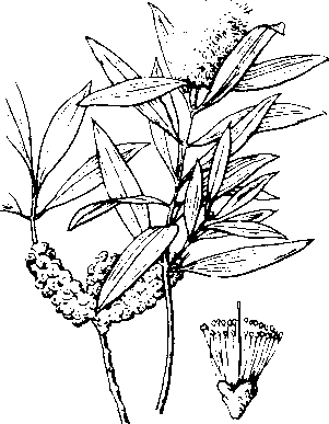 | 释义 | 白千层cajeputtreeMelaleuca leucadendra,桃金娘科白千层属常绿乔木。染色体数2n=2x=22。株高达20m。树皮灰白色,厚而疏松,薄片状剥落。叶互生,有油腺点,长椭圆状披针形,长5~10cm,全缘;穗状花序顶生,长6~12cm,花小,白色,花期1~2月;蒴果杯状或半球形,顶部3裂。产澳大利亚,中国福建、台湾、广东、广西、海南及云南有栽培。喜光、高温和肥沃土壤,稍耐干旱。播种繁殖,种子千粒重0.1g左右,虫害有地老虎、蝼蛄、大蟋蟀、绿象鼻虫等,可用90%敌百虫500~1000倍液,或80%敌敌畏1000~1500倍液防治;病害主要有茎腐病,宜拔除病苗,并喷洒波尔多液防治。