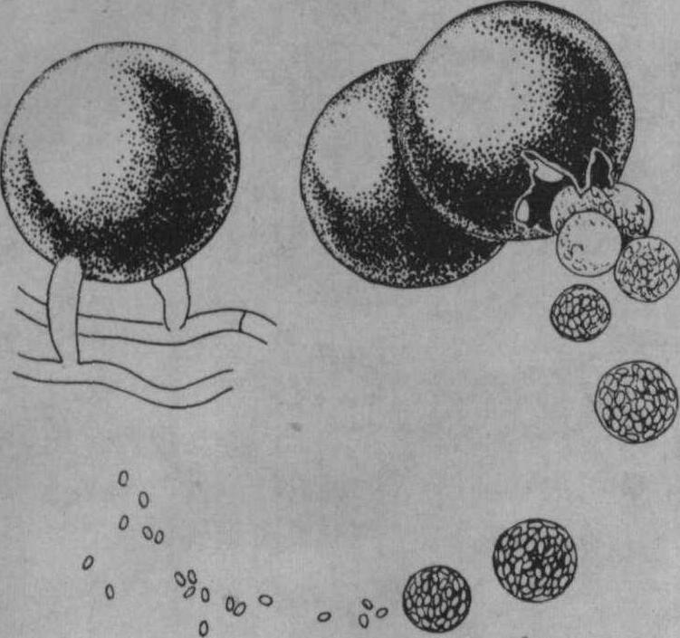 图2 被蜂球囊菌包裹的蜂蛹 传播 病死幼虫和病菌污染的饲料、巢脾都是该病的传染源。蜜蜂幼虫食入蜂球囊菌,孢子在肠内开始萌发,菌丝开始生长,尤其是在后肠,菌丝生长旺盛,然后菌丝穿透肠壁,使后肠破裂,同时在死亡幼虫体表形成孢子囊。孢子囊增殖和形成的最适温度是30℃左右,蜂巢温度下降(从35℃下降到30℃)时,幼虫最容易受感染。在春季蜂群大量繁殖,急于扩大蜂巢,往往由于保温不良或哺育蜂不足,致使外围幼虫受冷,此时最易发生白垩病。 蜜蜂蜂球囊菌在成蜂体内不繁殖。 诊断 挑取少量病死幼虫尸体表面物于载玻片上,加一滴蒸馏水,在低倍显微镜下观察,若看到白色似棉纤维般的菌丝和含有孢子的孢子囊,孢子呈椭圆形时,即可确诊为白垩病。 防治 可采取换箱换脾、蜂具消毒及药物治疗等措施。 除去病群中所有的病虫脾和发霉的蜜粉脾,换入干净的巢脾供蜂王产卵。抽出的巢脾用二氧化硫(燃烧硫磺)密闭熏蒸4小时以上,用药量可按每10张巢脾用3~5克硫磺计算。也可用氧化乙烯烟熏或用4%福尔马林溶液消毒巢脾。 |