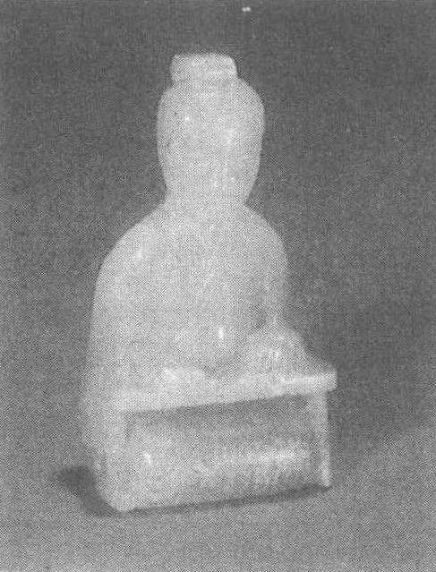 | 释义 | 白玉人西汉早期。高5.4厘米。1968年河北省满城县中山靖王刘胜墓出土。河北省文物研究所藏。玉料为白玉,晶莹温润,局部有浸蚀。圆雕而成,面形椭圆,粗眉凤眼,鼻梁高直,表情端庄宁静。头戴小冠,发拢于脑后,穿宽袖左衽长衫,腰扎格纹带,正襟危坐于几旁,双手置于几上。底阴刻隶书5行10字“维古玉人王公延十九年”。刘胜见“镂雕双螭龙纹玉璧”条目。