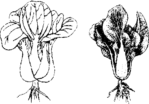 白 菜 生长发育与产品形成 白菜生育周期分营养生长期和生殖生长期。以秋冬白菜为例,营养生长期包括:❶发芽期: 从种子萌动到子叶展开,真叶显露。 ❷幼苗期: 从真叶显露到形成一个叶序。 ❸莲座期: 植株再展出1~2个叶序,是个体产量形成的主要时期。生殖生长期包括: ❶抽薹孕蕾期:抽生花薹,发出花枝。主花茎和侧枝上长出茎生叶,顶端形成花蕾。 ❷开花结果期: 花蕾长大,陆续开花、结实。 白菜以莲座叶为产品。秋播白菜一般1.5~2天分化一片新叶。如杭州油冬儿等品种单株,一般具25~30片叶,其中主要由第9~24片莲座叶构成产量。幼苗期叶面积的增长速度比叶重增长快; 莲座期则叶重增长速度较快。到生长后期,叶重增长主要是叶柄的增长,叶柄重常占叶总重的75~80%,为养分的贮藏器官。单位面积产量由株数和单株重所构成,而单株重则受叶数和叶重两个因素所制约。多数品种为叶重型,叶重增加主要靠叶面积增大和叶柄增重。 白菜喜冷凉气候,平均气温18~20℃和阳光充足的条件下生长最好。-2~-3℃能安全越冬。25℃以上的高温生长衰弱,易感病毒病,只有少数较耐热品种可在夏季栽培。白菜萌动的种子及绿体植株在气温15℃以下,经历一定的天数完成春化,苗端开始花芽分化,而叶分化停止。在长日照及较高的温度条件下抽薹、开花。但不同品种对长日照的要求有明显差异。 栽培技术 白菜类型、品种繁多,适应性广泛,在中国江、淮地区,除冬季和早春行简易覆盖栽培外,可多茬露地栽培; 华南地区可周年生产。在栽培上一般按三季安排: ❶秋、冬白菜: 育苗移栽,收获成株为主。华南是9~12月陆续播种,分期收获至翌年2月;江、淮地区是8月上旬~10月中旬陆续播种,封冻前收获完毕。 ❷春白菜: 晚秋播种,小苗越冬,翌春收获成株; 早春播种,采收幼苗。早春用冷床播种育苗或春分后播种育苗的,也可收获成株。 ❸夏白菜: 以栽培采收菜秧为主,5月上旬~8月上旬可随时播种,不断收获。白菜常与瓜类、豆类及大田作物轮作。春白菜与茄果类、瓜类、豆类、薯芋类蔬菜间作套种; 夏白菜与芹菜、茼蒿、胡萝卜等蔬菜混播; 秋冬白菜可与结球甘蓝、花椰菜、莴笋、马铃薯等间作或套种。利用不同品种排开播种,可实现周年供应。 白菜除早春、夏季等为栽培菜秧而采用直播外,一般行育苗移栽。宜选择保水保肥、排水良好的壤土作育苗畦,前茬收获后要早耕晒垡、清洁田园、施足基肥,整地后作成高畦或平畦。播种应掌握匀播和适当稀播。出苗后及时间苗,避免徒长; 间苗后进行追肥和浇水,并注意苗期除草和病虫害防治。一般播后25~30天移栽。定植田提前施肥、耕翻晒垡、作畦。栽植密度因品种、季节和栽培目的不同而异,多数品种株行距20~25厘米见方。栽植深度因气候、土质而异,早秋宜浅栽,防止因深栽烂心; 寒露后,栽菜宜深些,可以防寒。土质较松,栽植可稍深; 粘重土壤宜浅栽。 白菜根群浅,吸收能力较弱,生长期间应不断供给肥水。多次追施速效氮肥,是促进白菜生长、保证丰产的重要措施。合理施肥的原则: 一要定植后及时追肥,促苗恢复生长; 二要随白菜个体生长,增加追肥浓度和用量。至于施肥方法、时期、用量,则依天气、苗情、土壤等而定。浇水结合追肥进行。定植后3~5天内不可缺水,特别是夏季和早秋,栽后须连续3~4天每天早晚浇水。栽培白菜宜多施有机肥作基肥,生长期间适当追施化肥,也可结合喷灌进行叶面追肥。 白菜植株长到一定大小可随时采收。成株采收标准: 外叶叶色开始变淡,基部外叶发黄,叶丛由旺盛生长转向闭合生长,心叶伸长到与外叶齐平(俗称“平口”)。江、淮地区秋白菜定植后30~40天可陆续采收,收获成株则需50~60天; 春白菜须在抽薹前收获。华南地区播种至收获只需40~60天。 采种田应与白菜类其他蔬菜及白菜其他品种严格隔离,也要与芸薹属中染色体基数x=10的其他栽培作物隔离。原种田空间隔离距离至少2000米以上,生产用种田隔离距离不得少于1 000米。主要采种法有:❶成株采种法: 秋季适期播种。收获前选择生长健壮、具本品种特征的优良植株作种株,并按45厘米左右的株行距定植。江、淮地区需注意采取适当覆盖防寒,耐寒性弱的长梗白菜,可切去叶子上部,仅留叶柄和心叶定植,再适当用草覆盖。翌春除去防寒覆盖物,进行中耕、除草、施肥,花前注意防治蚜虫等,江、淮地区一般于5月至6月陆续收获种子。 ❷半成株采种法: 江、淮地区多于10月上、中旬播种育苗,冬前定植。翌春选留健壮者采种。种子产量较高,成本较低,但质量不及成株采种。 ❸小株采种法:江、淮地区2月上旬播种,出苗后去劣去杂一两次,按苗距20厘米左右留苗,5月下旬至6月上旬收获种子。春白菜留种多结合春季大田生产,去劣留优。 贮藏加工 ❶腌白菜: 采收充分成熟的成株,除去根部及老叶,洗净,待水分蒸发并稍萎蔫时,加盐干揉,码入陶缸或大木桶中。一层菜、一层盐,码满为止,上压重石。数天后待汁液浸出,再上下翻动一次,如前压紧约经25~30天后,即可食用。每50公斤鲜菜可加盐2.5~4公斤。 ❷白菜干: 采收充分生长的成株,去根和老叶、洗净、沸水泡片刻后上架晒干。 病虫害及防治 常见病害有病毒病、霜霉病、白斑病、根肿病等。主要虫害有菜蚜、菜心野螟(见大白菜、蔬菜虫害)、菜蛾、甘蓝夜蛾、黄曲条跳甲、菜粉蝶等见蔬菜虫害。 白菜Baicai