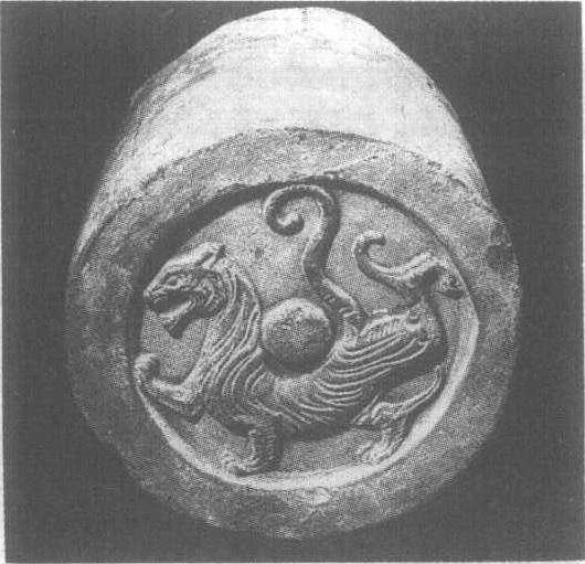 | 释义 | 白虎纹瓦当西汉。面径18.5厘米。1958年陕西省汉长安故城遗址出土,陕西省博物馆藏。虎为浮雕式,右前腿向上弯举,左后腿高高扬起,长尾腾空蛇曲,瞋目,张着血盆大口作怒吼状,凶猛无比。通体的条形纹,更增加了其质量感,令人望而生畏。白虎,四神之一,代表西方。有研究者认为,白虎瓦当是汉未央宫西方殿阙上的瓦当。瓦当见“‘羽阳千岁’瓦当”条目。