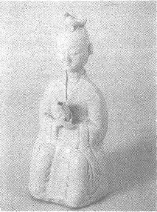 | 释义 | 白釉童子诵经瓷壶宋。高27.9厘米,口径2.5厘米。1963年北京顺义县辽净光塔出土。北京首都博物馆藏。童子束发、圆脸,双目微闭,身穿长袍,手捧经卷,作朗朗诵经状。其面流露稚气和调皮的笑容,貌似诵经,实则心不在焉。童体中空,顶上束发处开一孔以便注水,而流则是童子手中的经卷。背安一柄。底部呈六角形,放置极为平稳。通体施一层厚厚的白釉,更显童子的纯真无邪。这是一件设计巧妙的瓷壶,耀州窑也曾烧制过类似的瓷壶。