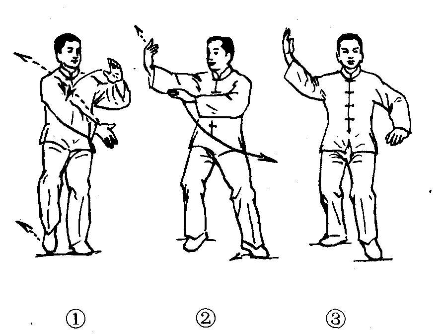 ❸两臂保持弧形,不可折成三角形或过直。攻防含义:白鹤亮翅是防守型动作,主要利用掤劲进行体侧上方的防守和将进攻胸、腹部的对方手臂化解开。注意事项: